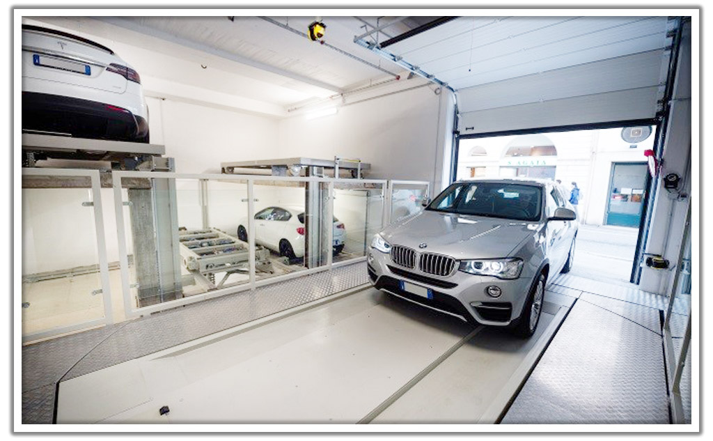 Sistema di parcheggio automatico per uso privato, garage condominiali, hotel e concessionarie d’auto.