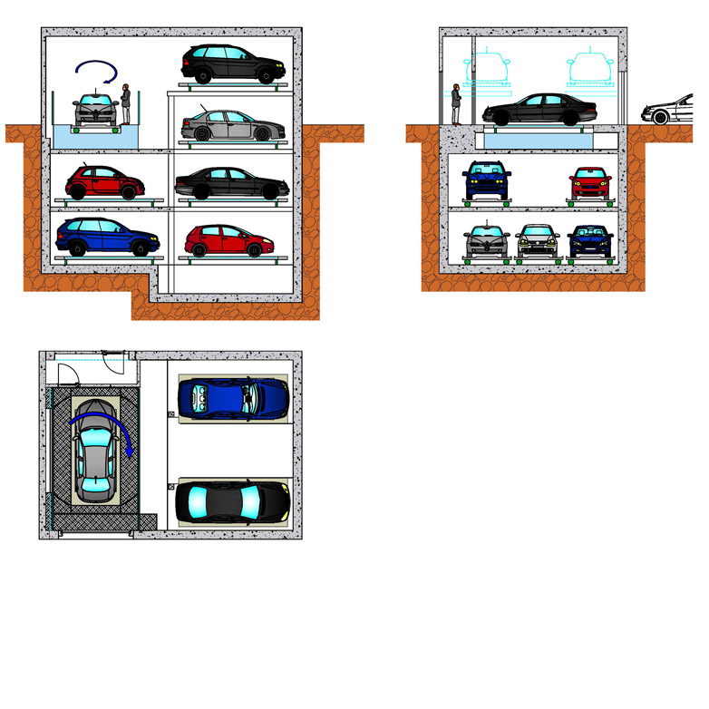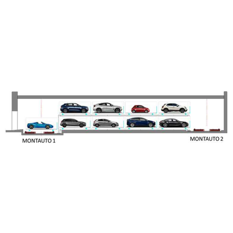 Sistema di parcheggio automatizzato per uso privato, autorimesse di condomini, hotel e concessionarie d’auto.