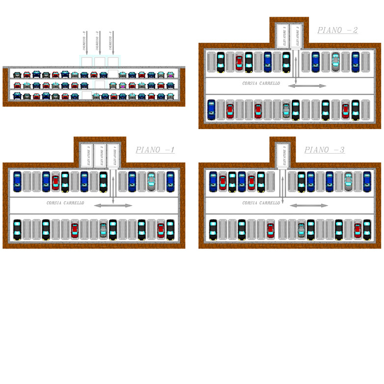 Questi sistemi di parcheggi automatici si possono sviluppare su diversi livelli.